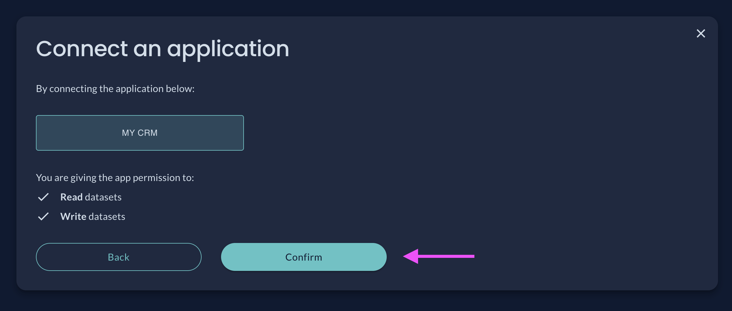 After you complete the App connection process, you must provide your Workspace Key to the App you've connected with in order for them to access your datasets!