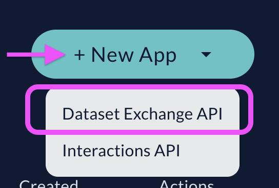 + New Appand selectDataset Exchange APIfrom the dropdown menu