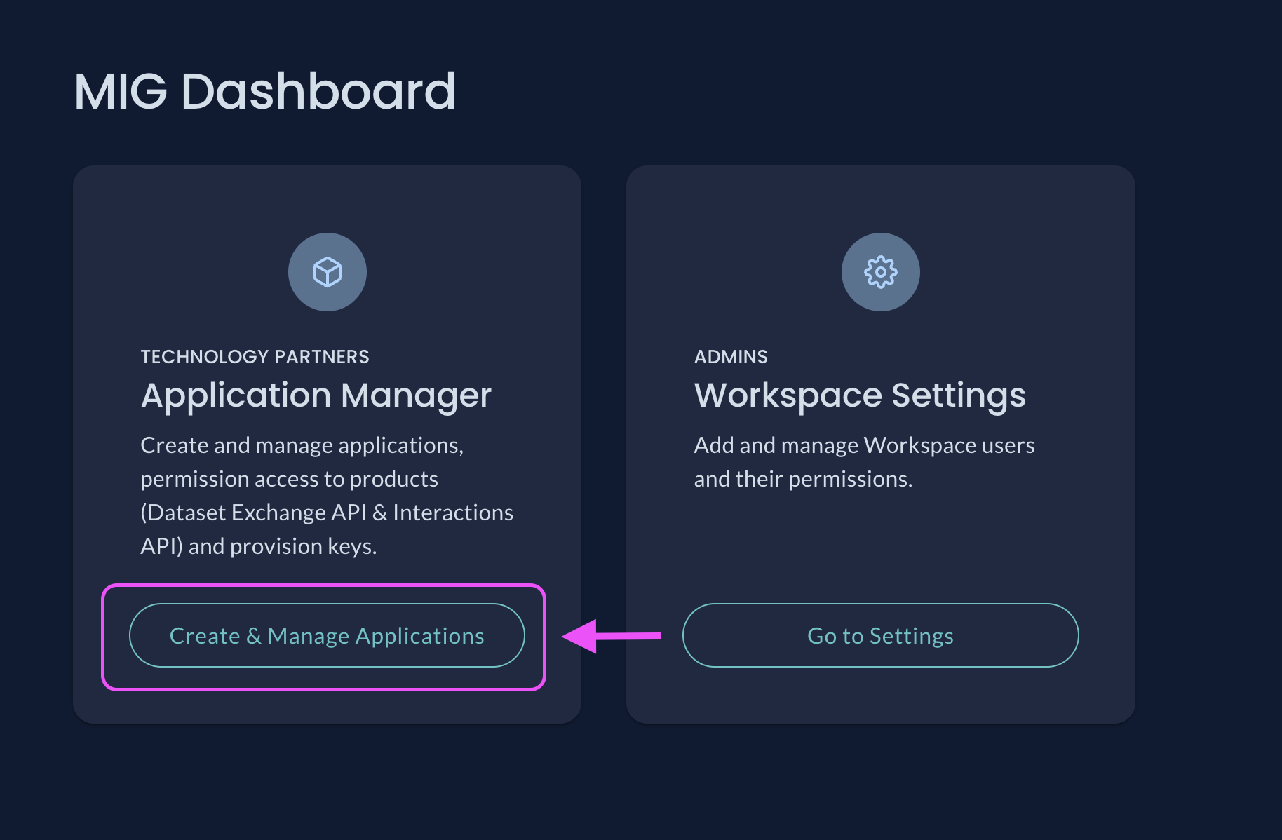 Dataset Owners, Campaigns, and Organizations should Connect to an App to complete the process for using the Dataset Exchange API.